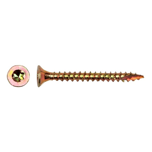 Spaanplaatschroef PFS Verzinkt zijn geel verzinkt, voorzien van dubbel verzonken kop, t-drive en freesribben onder de kop. Verder zijn ze voorzien van een volledig draad, gehard en gewaxt en gemaakt van hard staal.